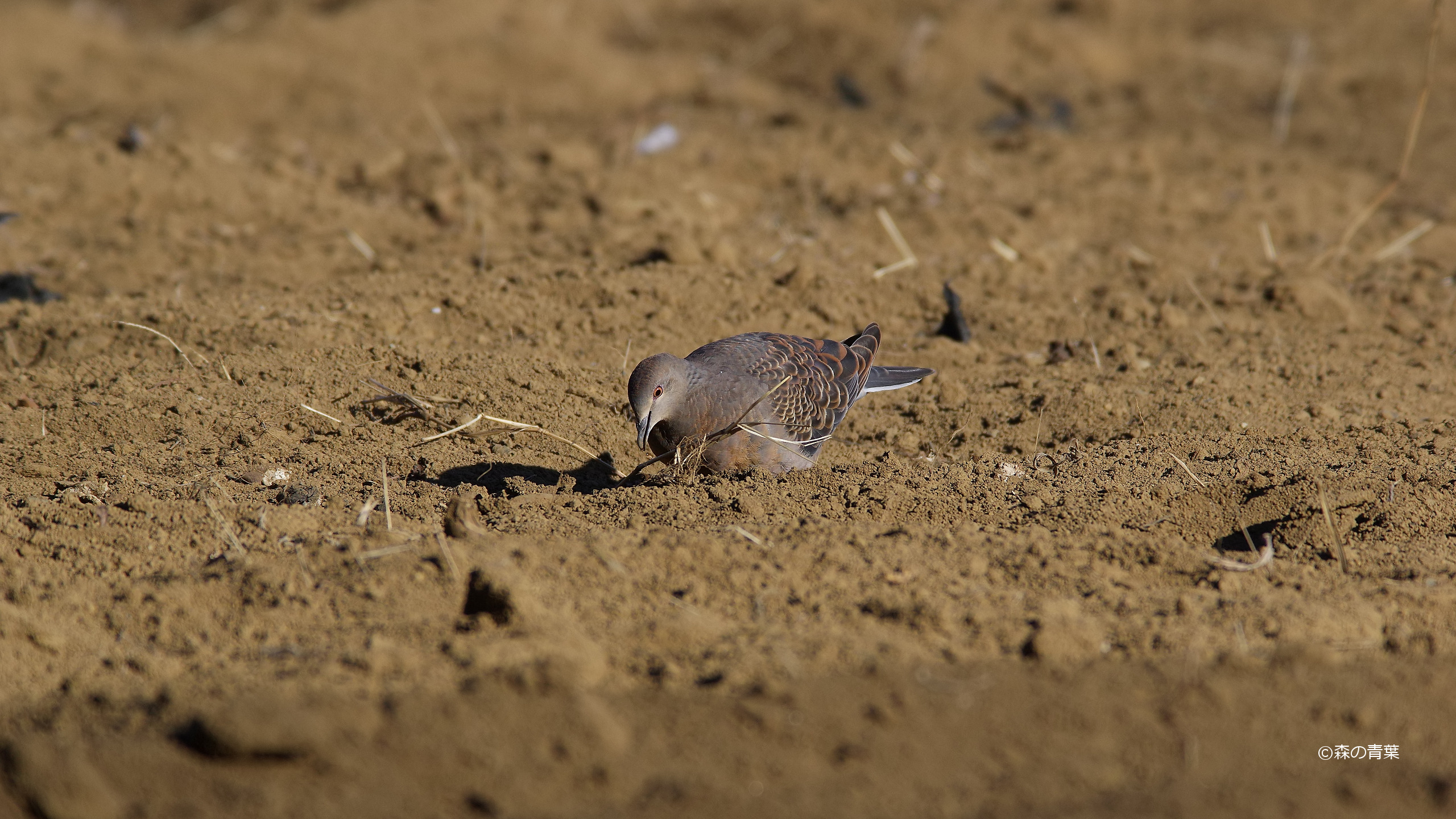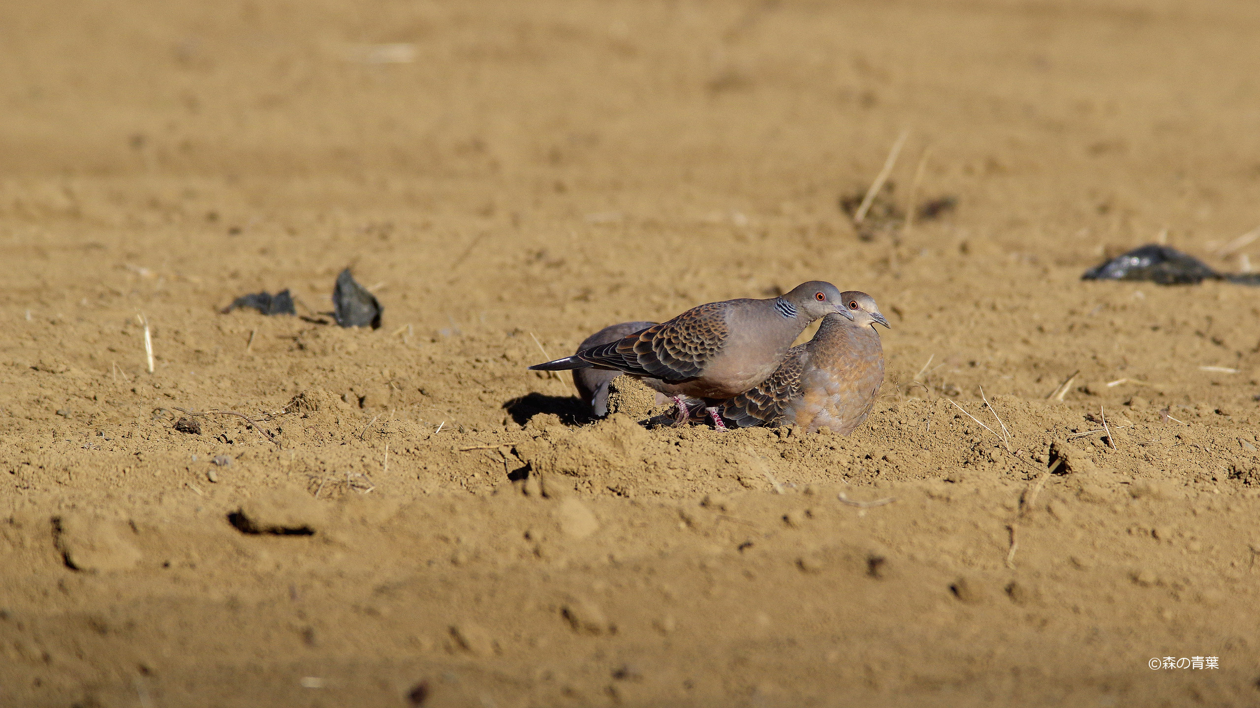 公園からの帰路。「キジバト」が収穫を終えて耕された芋畑に集まっていました。