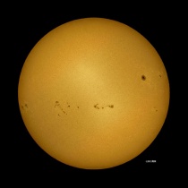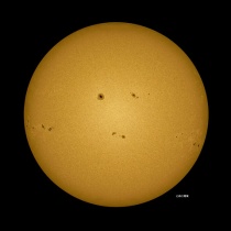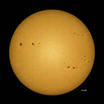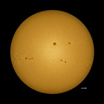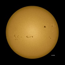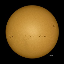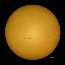 11月5日09:00を少し廻った頃の撮影。朝から空一面の雲でしたが9時近くから少し晴れ間が出て来ました。でも直ぐに雲が出て来ました。小さな黒点群がまだ出てきていました。太陽のエッジは凸凹で波を打っていました。写真はクリックで、拡大します。絶対に太陽は直視しないよう ...