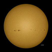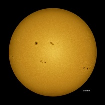 11月11日13:45頃の撮影。朝から空一面の雲。予報では15時頃から晴れるとの事でした。丁度雲が切れて青空の穴が開きました。太陽が穴に入ったので明るい太陽が撮れました。横一列に「黒点」が並びました。今夜は「お月様」も撮れそうです。写真はクリックで、拡大します。絶対 ...