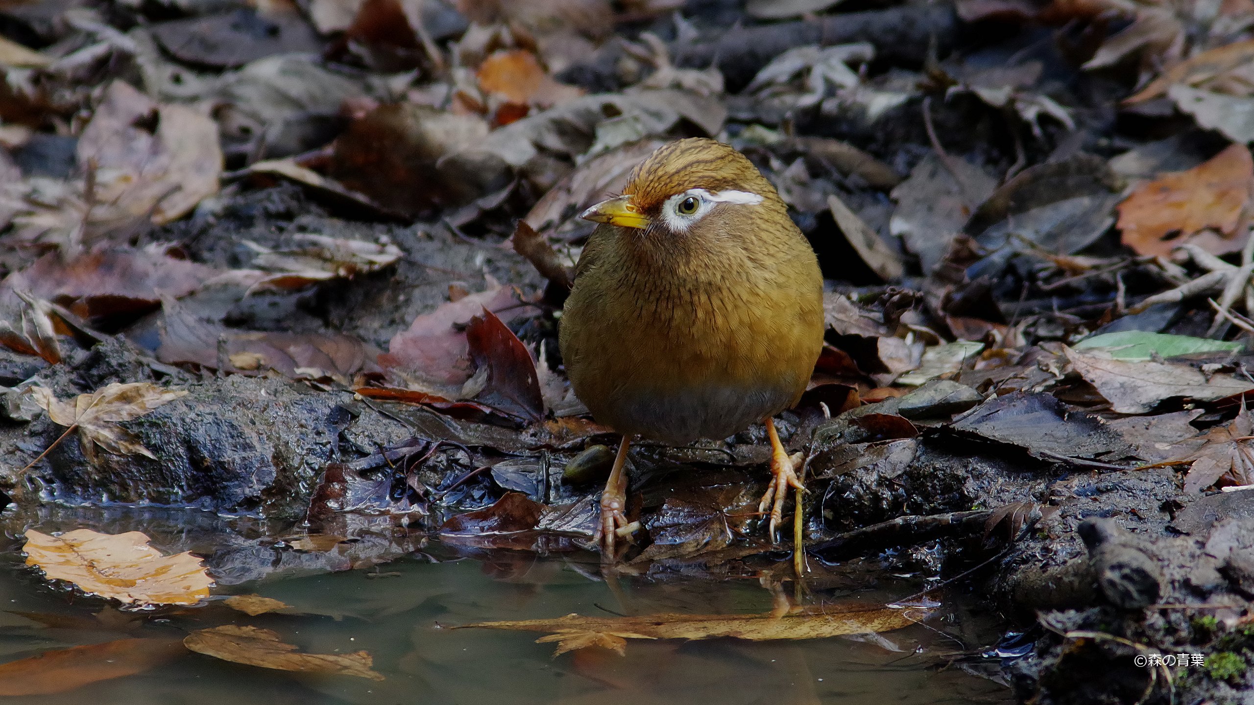 水場のガビチョウ。連日この近くは、ウソ撮影で大繁盛。