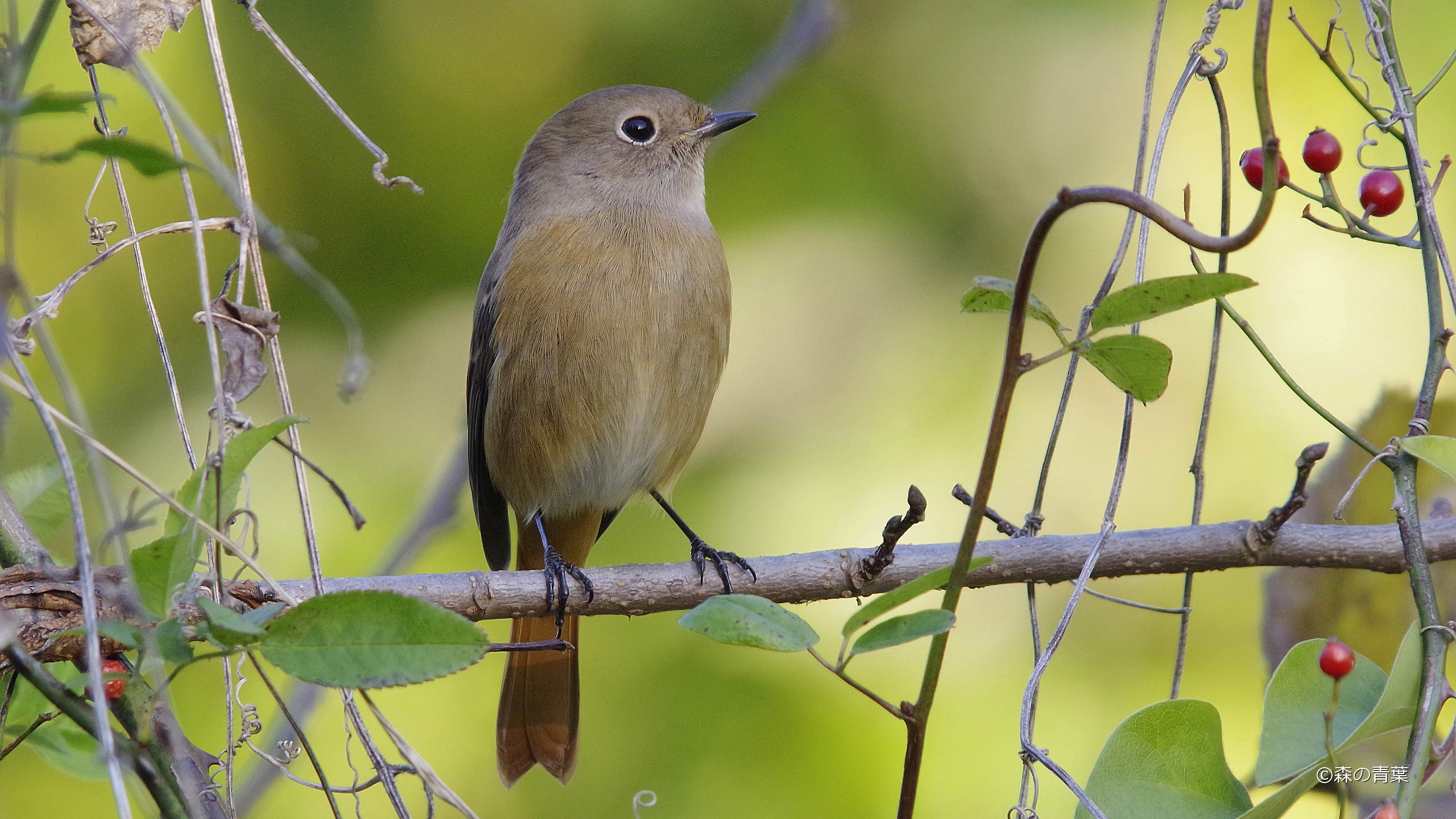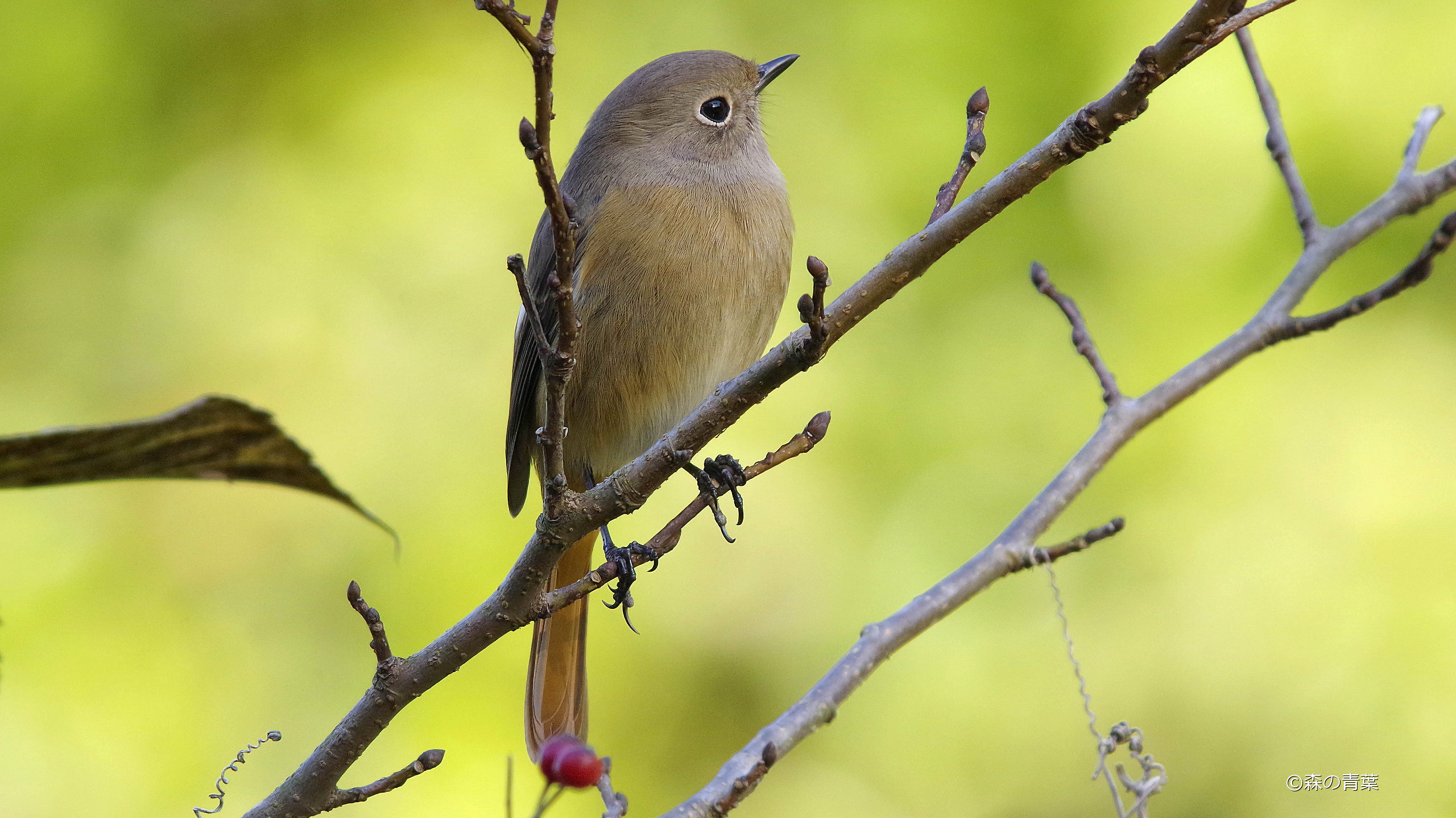 先週MFで打ち合わせの帰りに、ジョウビタキ♀が鳴いていました。