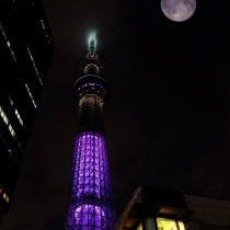 8月31日23:30頃の撮影。スーパーブルームーンでした。月齢15.1雲が多くて半ば諦めかけていましたが、23時を過ぎた頃から雲が減って来ました。月の周りに色が着いていましたが、何とか撮影できました。※スカイツリーの写真は合成です写真は、クリックで拡大します。・撮影機 ...